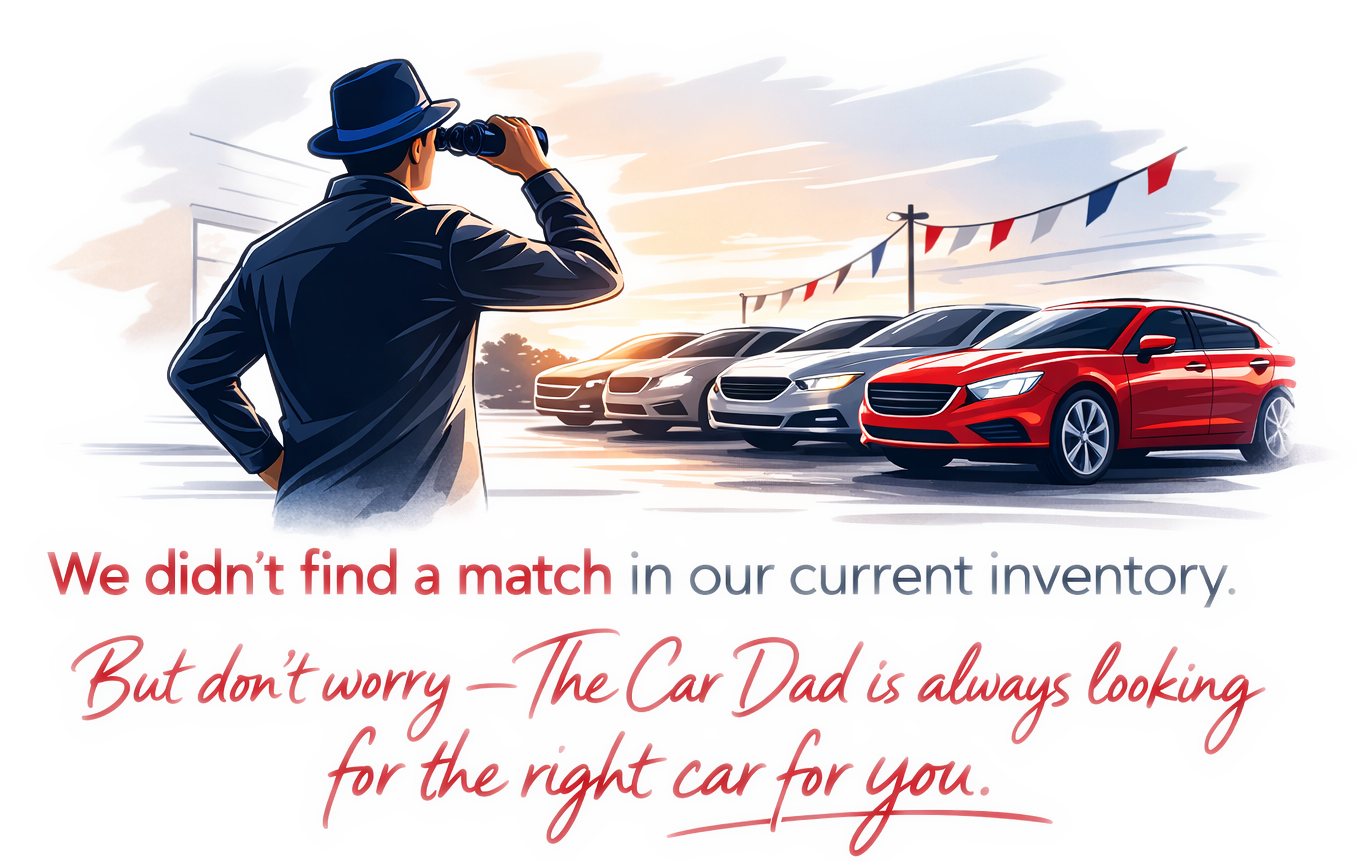 Most dealers hold back important information until you’re deep into the process—so deep that backing out feels uncomfortable. We believe that’s the wrong way to do business. At The Car Dad, we give you the information you need right up front, so you can make a clear, confident decision from the very beginning.